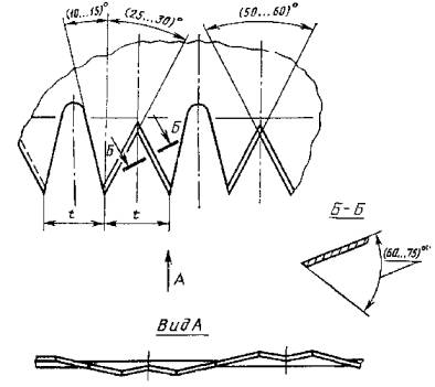 * Только для ножовок типа 1. ** Знаком «+» обозначены применяемые шаги зубьев. (Измененная редакция, Изм. № 1). Тип 3 Черт. 3 Примечание. Черт. 1-3 не определяют конструкцию ножовок. Таблица 2 мм