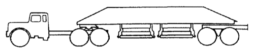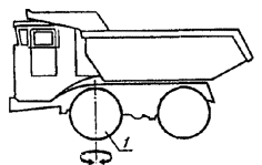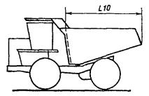 Срок действия с 01.01.88 до 01.01.93 1. НАЗНАЧЕНИЕНастоящий стандарт устанавливает термины, определения и содержание технической характеристики для коммерческой документации по самоходным землевозам. 2. ОБЛАСТЬ ПРИМЕНЕНИЯНастоящий стандарт распространяется на землевозы по ИСО 6165. 3. ССЫЛКИ3.1. Ссылочные нормативно-технические документы приведены в обязательном приложении 2. 4. ТЕРМИНЫ И ОПРЕДЕЛЕНИЯ4.1. Землевоз - самоходная колесная машина с открытым кузовом, которая транспортирует, разгружает или распределяет материал. Загрузка землевоза осуществляется внешними средствами (см. ИСО 6165). 4.2. Базовая машина - землевоз по технической документации изготовителя. 4.3. Рабочее оборудование - комплект составных частей, монтируемых на базовой машине для обеспечения выполнения ее основной функции в соответствии с назначением. 4.4. Дополнительное оборудование - поставляемая по выбору заказчика сборочная единица из составных частей, которая может быть смонтирована на базовой машине для специального использования. 4.5. Составная часть - деталь или сборочная единица из деталей базовой машины, рабочего оборудования или дополнительного оборудования. 5. БАЗОВАЯ МАШИНА5.1. Типы землевозов 5.1.1. По способу разгрузки 5.1.1.1. С задней разгрузкой (черт. 1). 5.1.1.2. С донной разгрузкой (черт. 2). 5.1.1.3. С боковой разгрузкой (черт. 3). 5.1.2. По системе управления поворотом 5.1.2.1. С передними управляемыми колесами (черт. 4). 5.1.2.2. С шарнирно-сочлененной рамой (черт. 5). 5.1.3. По системе привода хода 5.1.3.1. С задними ведущими колесами (черт. 6). 5.1.3.2. Со всеми ведущими колесами (черт. 7). 5.1.3.3. Со средними ведущими колесами (черт. 8). 5.1.4. По числу осей 5.1.4.1. Двухосные (черт. 9). 5.1.4.2. Трехосные (черт. 10). 5.1.4.3. С числом осей более трех (черт. 11). Землевоз с задней разгрузкой Черт. 1 Землевоз с донной разгрузкой Черт. 2 Землевоз с боковой разгрузкой Черт. 3 Землевоз с передними управляемыми колесами 1 - управляемые колеса Черт. 4 Землевоз с шарнирно-сочлененной рамой 1 - центр поворота Черт. 5 Землевоз с задними ведущими колесами 1 - ведущие колеса Черт. 6 Землевоз со всеми ведущими колесами 1 - ведущие колеса Черт. 7 Землевоз со средними ведущими колесами 1 - ведущие колеса Черт. 8 Двухосный землевоз Черт. 9 Трехосный землевоз Черт. 10 Землевоз с числом осей более трех Черт. 11 5.2. Размерные характеристики (черт. 12). Определения размерных характеристик - по ИСО 6746/1. Определения размерных характеристик приведены в приложении 1. Размерные характеристики базовой машины (землевоза)