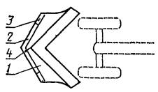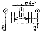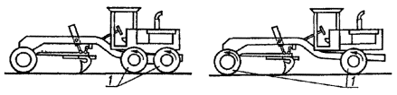 1 - отвал; 2 - нож, 3 - угловой нож, 4 - носок Черт. 11 6.3.4. Передний отвал 1 - отвал, 2 - нож, 3 - угловой нож Черт. 22 7. ЭКСПЛУАТАЦИОННАЯ ТЕРМИНОЛОГИЯ7.1. Мощность нетто двигателя - по ИСО 1585. 7.3. Управляемость 7.3.1. Радиус поворота - по ГОСТ 27257-87. 7.4. Эффективность торможения - по ИСО 3450. 8. ТЕХНИЧЕСКАЯ ХАРАКТЕРИСТИКА ДЛЯ КОММЕРЧЕСКОЙ ДОКУМЕНТАЦИИ, ВЫРАЖЕННАЯ В ЕДИНИЦАХ СИ (ПРИМЕРЫ)8.1. Двигатель (привести характеристики): Изготовитель и модель С воспламенением от сжатия или с искровым зажиганием Тактность (двух- или четырехтактный) С естественным всасыванием, механическим наддувом или газотурбонаддувом Число цилиндров Диаметр цилиндра Ход поршня Рабочий объем цилиндров Система охлаждения (воздушное или водяное) Вид топлива Мощность-нетто на маховике .... при .... об/мин Максимальный крутящий момент .... при .... об/мин Тип стартера Напряжение в системе электрооборудования ..... В 8.2. Трансмиссия (указатель тип) Примеры: С ручным переключением, со сцеплением на маховике С сервопереключением, с гидротрансформатором или без него Объемная гидропередача Электрическая трансмиссия Число скоростей переднего и заднего хода Скорости движения передним и задним ходом 8.3. Мосты 8.3.1. Передний мост (указать тип) Примеры: Ведущий, с двухступенчатой механической передачей Ведущий, с объемным гидроприводом колес Неведущий С наклоном колес 8.3.2. Задний мост (указать тип) Примеры: Двухколесный Двухколесный с планетарными ступичными редукторами Четырехколесная балансирная тележка (указать тип и передаточное число) 8.4. Рулевое управление (указать тип) - по ГОСТ 27254-87 Примеры: С шарнирно-сочлененной рамой С передними управляемыми колесами Ручное С силовым приводом 8.4.1. Эффективность: Радиус поворота без наклона колес Радиус поворота при максимальном угле складывания шарнирно-сочлененной рамы и максимальном наклоне колес 8.5. Тормоза 8.5.1. Рабочие тормоза Примеры: Тип (барабанные, дисковые, мокрые или сухие) Система привода (механическая, пневматическая, гидравлическая, электрическая, комбинированная и т.д.) 8.5.2. Стояночный тормоз (указать тип) 8.5.3. Резервный тормоз (указать тип) 8.5.4. Эффективность торможения (указать) - по ИСО 3450 8.6. Шины: Тип и размер Норма слойности Размер обода 8.7. Гидросистема 8.7.1. Рабочие насосы: Тип Подача насоса .... при давлении ..., при номинальной частоте вращения двигателя ... об/мин Давление открывания главного предохранительного клапана 8.8. Заправочные емкости систем машины: Топливный бак Картер двигателя Система охлаждения Трансмиссия Дифференциал Балансирная тележка Гидросистема 8.9. Эксплуатационная масса 8.10. Отгрузочная масса 8.11. Габаритные размеры автогрейдера (привести схемы) ПРИЛОЖЕНИЕ АРАЗМЕРНЫЕ ХАРАКТЕРИСТИКИ БАЗОВОЙ МАШИНЫУсловные обозначения, термины и определения