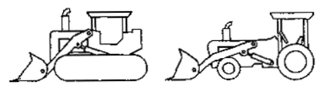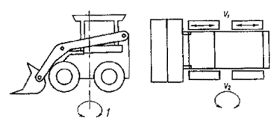 Дата введения 01.01.89 1. НАЗНАЧЕНИЕНастоящий стандарт устанавливает термины, определения и содержание технической характеристики для коммерческой документации по самоходным гусеничным и колесным погрузчикам и их рабочему оборудованию. 2. ОБЛАСТЬ ПРИМЕНЕНИЯНастоящий стандарт распространяется на погрузчики по ИСО 6165. 3. ССЫЛКИСсылочные документы приведены в обязательном приложении. 4. ОБЩИЕ ОПРЕДЕЛЕНИЯ4.1. Погрузчик - самоходная гусеничная или колесная машина с рычажной системой и фронтально расположенным ковшом, заполняемым при поступательном движении машины, которая поднимает, транспортирует и выгружает материал (см. ИСО 6165). 4.2. Базовая машина - погрузчик, соответствующий технической документации изготовителя. Машина должна быть снабжена необходимыми местами крепления и дополнительными устройствами для крепления рабочего оборудования по п. 6. 4.3. Рабочее оборудование - комплект составных частей, монтируемых на базовую машину для обеспечения выполнения ее основной функции в соответствии с назначением. 4.4. Дополнительное оборудование - поставляемая по выбору заказчика сборочная единица из составных частей, которая может быть смонтирована на базовой машине для специального применения. 4.5. Составная часть - деталь или сборочная единица из деталей базовой машины, рабочего оборудования или дополнительного оборудования. 5. БАЗОВАЯ МАШИНА5.1. Типы погрузчиков 5.1.1.1. Гусеничный погрузчик (см. черт. 1) 5.1.1.2. Колесный погрузчик (см. черт. 2) 5.1.2. По расположению двигателя 5.1.2.1. С передним расположением двигателя (см. черт. 3) 5.1.2.2. С задним расположением двигателя (см. черт. 4) 5.1.3. По системе управления поворотом 5.1.3.1. С передними управляемыми колесами (см. черт. 5) 5.1.3.2. С задними управляемыми колесами (см. черт. 6) 5.1.3.3. Со всеми управляемыми колесами (см. черт. 7) 5.1.3.4. С шарнирно-сочлененной рамой (см. черт. 8) 5.1.3.5. С бортовым поворотом (колесный погрузчик) (см. черт. 9а) 5.1.3.6. С независимым вращением движителей каждого борта (колесный погрузчик) (см. черт. 9б) 5.1.3.7. С бортовым поворотом (гусеничный погрузчик) (см. черт. 10) 5.1.3.8. С независимым вращением движителей каждого борта (гусеничный погрузчик) (см. черт. 11) 5.1.4. По системе привода хода 5.1.4.1. С передними ведущими колесами (см. черт. 12) 5.1.4.2. С задними ведущими колесами (см. черт. 13) 5.1.4.3. Со всеми ведущими колесами (см. черт. 14) Типы по ходовой части (см. п. 5.1.1.) Черт. 1. Гусеничный погрузчик Черт. 2 Колесный погрузчик Типы по расположению двигателя (см. п. 5.1.2) Черт 3. С передним расположением двигателя Черт. 4. С задним расположением двигателя Типы по системе управления поворотом (см. п. 5.1.3) 1 - управляемые колеса Черт. 5. С передними управляемыми колесами 1 - управляемые колеса Черт. 6. С задними управляемыми колесами 1 - все колеса управляемые Черт. 7. Со всеми управляемыми колесами 1 - ось поворота полурам Черт. 8. С шарнирно-сочлененной рамой 1 - центр поворота Черт. 9а. С бортовым поворотом, v2 = 0 (колесный погрузчик) 1 - центр поворота Черт. 9б. С независимым вращением движителей каждого борта, v1 ¹ v2 (колесный погрузчик) 1 - управляемая гусеница Черт. 10. С бортовым поворотом (гусеничный погрузчик) 1 - управляемая гусеница Черт. 11. С независимым вращением движителей каждого борта, v1 ¹ v2 (гусеничный погрузчик) Типы по системе привода хода (см. п. 5.1.4) 1 - ведущие колеса Черт. 12. С передними ведущими колесами 1 - ведущие колеса Черт. 13. С задними вед