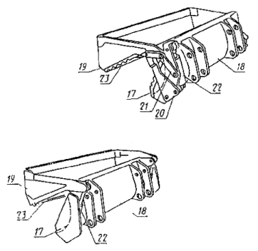 1 - ковш; 15 - гидроцилиндр боковой разгрузкой; 16 - рама ковша с люлькой 6.3.2. Двухчелюстной ковш