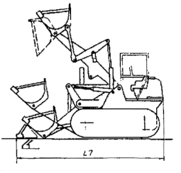 Расстояние по координате X между двумя плоскостями, одна из которых проходит через самую заднюю точку машины, другая - через наиболее выступающую вперед точку режущей кромки горизонтально лежащего днищем на земле ковша |