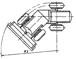 Расстояние по координате Z от центра поворота до наиболее удаленной точки боковой поверхности ковша при выполнении машиной самого крутого практически возможного поворота |