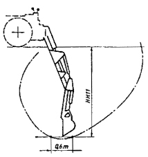 Вылет кромки двухчелюстного ковша при разгрузке |