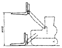 Расстояние по координате Z от GRP до верхней поверхности горизонтально установленных вилок при максимальной высоте шарнира грузовых вил |