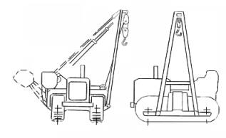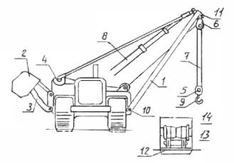 Дата введения 01.01.90 1. НАЗНАЧЕНИЕНастоящий стандарт устанавливает терминологию и содержание технической документации по самоходным гусеничным трубоукладчикам. 2. ОБЛАСТЬ ПРИМЕНЕНИЯНастоящий стандарт распространяется на гусеничные трубоукладчики по разд. 4. 3. ССЫЛКИСсылочные документы приведены в приложении 2. 4. ОБЩИЕ ОПРЕДЕЛЕНИЯ4.1. Трубоукладчик - самоходная гусеничная машина, предназначенная для подъема и укладки труб и транспортирования оборудования для трубопроводов. Данная машина, базой для которой служит гусеничный трактор, имеет специально сконструированные составные части, например главную раму, противовес, механизм подъема стрелы и груза и боковую стрелу, поворачивающуюся только в вертикальной плоскости. 4.2. Базовая машина - трубоукладчик без рабочего оборудования, соответствующий технической документации изготовителя, то есть с башмаками указанной ширины и механизмом подъема. 4.3. Рабочее оборудование - комплект составных частей (стрела и противовесы), монтируемых на базовую машину для обеспечения выполнения ее основной функции в соответствии с назначением. 4.4. Дополнительное оборудование - поставляемая по выбору заказчика сборочная единица из составных частей, которая может быть смонтирована на базовой машине для специального применения. 4.5. Составная часть - деталь или сборочная единица из деталей базовой машины, рабочего или дополнительного оборудования. 5. БАЗОВАЯ МАШИНА5.1. Основной вид трубоукладчика - по черт. 1. Трубоукладчик Черт. 1 Примечание. В настоящее время существуют два вида механизмов подъема стрелы: канатный и гидравлический.