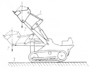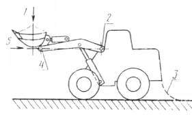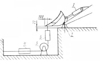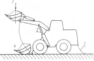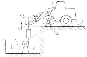 Дата введения 01.01.92 1. НАЗНАЧЕНИЕНастоящий стандарт устанавливает методы определения усилий на рабочих органах и опрокидывающих нагрузок погрузчиков, а также лимитирующие их факторы. Он распространяется на колесные и гусеничные погрузчики по ГОСТ 28764 и по ГОСТ 27721. 2. ССЫЛКИСсылочные документы приведены в приложении. 3. ТЕРМИНЫ И ОПРЕДЕЛЕНИЯВ настоящем стандарте применяются следующие термины и определения: 3.1. Усилия на рабочих органах 3.1.1. Вырывное усилие - максимальное установившееся, направленное вверх усилие, возникающее в точке, находящейся на расстоянии 100 мм позади режущей кромки ковша, при действии гидроцилиндров перемещения стрелы или гидроцилиндров поворота ковша и при расположении нижней поверхности режущей кромки параллельно опорной плоскости GRP на высоте 20 мм над нею. Для ковшей с прямолинейной, криволинейной или треугольной режущей кромкой вышеуказанное расстояние 100 мм следует измерять от середины режущей кромки. 3.1.2. Подъемное усилие - максимальный груз, который может быть поднят в запрокинутом ковше от уровня опорной поверхности на полную высоту при помощи гидроцилиндров перемещения стрелы при расположении центра тяжести нагрузки на одной вертикали с геометрическим центром тяжести номинального объема ковша ГОСТ 17257. 3.2. Опрокидывающая нагрузка на максимальном вылете или на определенной высоте - минимальная нагрузка, центр тяжести которой расположен на одной вертикали с геометрическим центром тяжести номинального объема ковша, приводящая машину в состояния, предельные для опрокидывания груза (см. пп. 3.5.3 и 7.1): Ограничение по опрокидыванию 1 - на определенной высоте; 2 - нагрузка; 3 - на максимальном вылете а) для гусеничных погрузчиков при жесткой подвеске рамы ходовой части опрокидывающую нагрузку определяют при отрыве передних опорных катков от гусеничной ленты (см. черт. 1). При других видах подвески метод определения опрокидывающей нагрузки может быть установлен изготовителем и указан в отчете; б) для колесных погрузчиков опрокидывающую нагрузку определяют при отрыве, по крайней мере, одного из задних колес от опорной поверхности. В этом предельном состоянии машины достигается равновесие между опрокидывающим моментом, создаваемым опрокидывающей нагрузкой, и восстанавливающим моментом, создаваемым массой машины. 3.3. Масса - эксплуатационная масса машины по ГОСТ 27922. 3.4. Давление рабочей жидкости 3.4.1. Рабочее давление в контуре - номинальное давление, создаваемое в конкретном гидроконтуре насосом (насосами). 3.4.2. Давление удерживания в контуре - максимальное статическое давление в конкретном гидроконтуре, ограниченное предохранительным клапаном при расходе не свыше 10 % номинального расхода для данного контура. 3.5. Лимитирующие факторы (см. также п. 7.1). 3.5.1. Ограничение по возможностям гидросистемы - случай, когда усилия на рабочем органе или подъемное усилие лимитируется рабочим давлением или давлением удерживания в контуре. 3.5.2. Ограничение по возможностям двигателя - при усилиях на рабочем органе лимитирующими остановку двигателя. 3.5.3. Ограничение по опрокидыванию - при усилии на рабочем органе лимитирующими начало опрокидывания машины. 4. ПРИБОРЫ И ОБОРУДОВАНИЕ ДЛЯ ИСПЫТАНИЙОборудование для испытаний должно включать устройства, перечисленные в пп. 4.1 - 4.4. 4.1. Динамометр или измерительный преобра