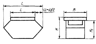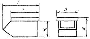 Пример условного обозначения металлической тары типа 3, исполнения 1 с L = 400 мм, В = 300 мм, H = 160 мм, массой брутто 0,05 т: Тара 3 - 1 - 40 - 30 - 16 - 0,05M ГОСТ 14861-91 7. Основные параметры и размеры тары типа 3, исполнения 2 должны соответствовать указанным на черт. 5 и в табл. 6. Черт. 5 Таблица 6 Размеры, мм