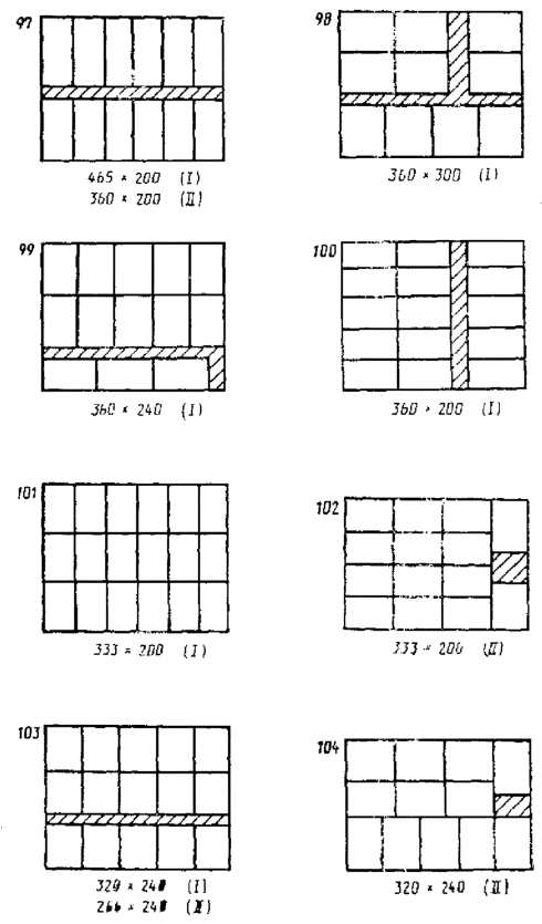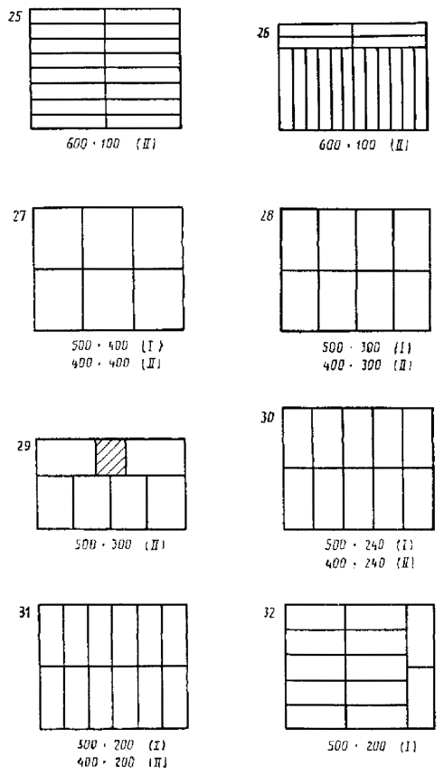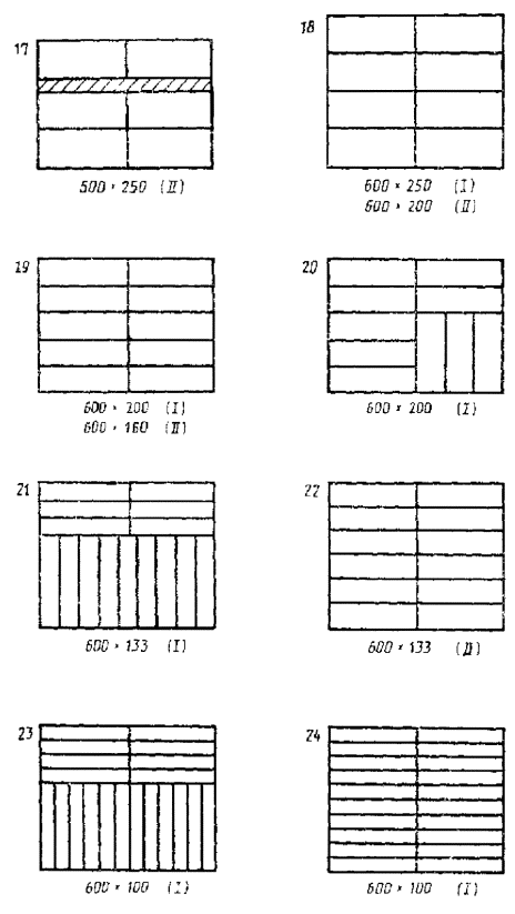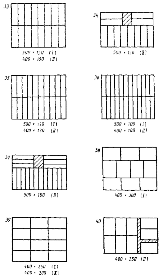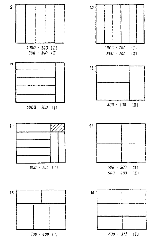 Примечание. Подчеркнутые сочетания размеров являются предпочтительными. 2.2. Наружные диаметры транспортной тары круглого сечения выбирают из следующего ряда размеров, мм: 1200, 1000, 800, 620, 600, 550, 500, 484, 435, 400, 370, 351, 320, 294, 277, 266, 246, 226, 219, 200 2.3. Внутренние размеры транспортной тары устанавливаются, исходя из толщины ее стенок и с учетом величины деформации при транспортировании и хранении продукции. Например, вибрация при транспортировании, давление на ящики в штабеле и др. 2.4. При выборе высоты транспортной тары следует исходить из основных принципов: минимального расхода тарного материала и с учетом пакетных перевозок грузов (высота пакета). Рекомендуемый ряд для выбора наружной высоты транспортной тары, мм: 1200, 1150, 1100, 1050, 1000, 950 900, 850, 800, 775, 720 675, 620, 600, 560, 500, 465, 400, 360, 333, 320, 300, 280, 266, 250, 240. 2.5. Отклонения от размеров тары устанавливаются в стандартах на конкретные виды тары. 2.6. Схемы размещения транспортной тары на поддонах приведены в приложениях 1, 2. 3. РАЗМЕРЫ ПОТРЕБИТЕЛЬСКОЙ ТАРЫ3.1. Порядок расчета размеров потребительской тары, а также выбора транспортной тары для потребительской или изделий заданных размеров даны в приложении 3. ПРИЛОЖЕНИЕ 1Рекомендуемое РАЗМЕЩЕНИЕ РЯДОВ ТРАНСПОРТНОЙ ТАРЫ ПРЯМОУГОЛЬНОГО СЕЧЕНИЯ НА ПОДДОНАХ