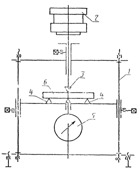 где Е- модуль упругости, МПа; Р - нагрузка, кг; l - расстояние между опорами, см; b - ширина балочки, см; h - высота балочки, см; g - величина прогиба, см. Принципиальная схема прибора для определения модуля упругости приведена на черт. 6. Черт. 6. 1 - рамка, 2 - гири, 3 - призма штока, 4 - призмы опоры, 5 - индикатор часового типа, 6 - образец-балочка. видимые трещины и посечки измеряют металлической линейкой по ГОСТ 427 и щупом по ТУ 2-034-225; отбитости угла измеряют металлической линейкой по ГОСТ 427 по наибольшей длине ребра плитки; глубину отбитости ребер на плитках измеряют металлической линейкой по ГОСТ 427 на поверхности плитки по максимальному перпендикуляру к ребру плитки; длину отбитостей ребер измеряют металлической линейкой по ГОСТ 427; выплавки, выгорки и пузыри измеряют металлической линейкой по ГОСТ 427 по наибольшей длине. 3.17. Наличие невидимых трещин и посечек определяют простукиванием металлическим молоточком массой не более 200 г, при этом плитки должны издавать чистый недребезжащий звук. 3.18. Разделяемость плиток типа ПС производится следующим образом: спаренную плитку устанавливают на торец и по ее центральной части наносят удар двухсторонней кирочкой с пластинами из твердой стали массой не более 300 г. 4. ТРАНСПОРТИРОВАНИЕ И ХРАНЕНИЕ4.1. Транспортирование. 4.1.1. Плитки транспортируют всеми видами транспорта в крытых транспортных средствах в соответствии с правилами перевозок грузов, действующими на данном виде транспорта. Допускается транспортировать плитки открытым автомобильным транспортом. 4.1.2. Размещение и крепление грузов в железнодорожных вагонах должно производиться в соответствии с техническими условиями погрузки и крепления грузов, утвержденными МПС. 4.1.3. Погрузочно-разгрузочные работы должны выполняться в соответствии с требованиями ГОСТ 12.3.009. 4.2. Хранение. 4.2.1. Плитки должны храниться раздельно по маркам в крытых складских помещениях или под навесом на площадках с твердым покрытием. Допускается хранение плиток на открытых площадках с твердым покрытием не более 5 дней. 5. ГАРАНТИИ ИЗГОТОВИТЕЛЯ5.1. Изготовитель гарантирует соответствие кислотоупорных и термокислотоупорных керамических плиток требованиям настоящего стандарта при соблюдении условий транспортирования и хранения. 5.2. Гарантийный срок эксплуатации плиток - 3 года с ввода их в эксплуатацию. ПРИЛОЖЕНИЕ