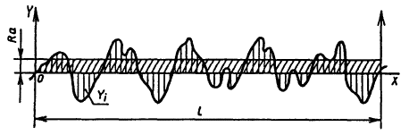 где уpi - высота i-го наибольшего выступа профиля; уni - глубина i-й наибольшей впадины профиля. Ra - среднее арифметическое абсолютных отклонений профиля, вычисленное по формуле (черт. 3)