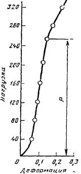 Постановлением Государственного комитета стандартов Совета Министров СССР от 9 декабря 1970 г. № 1723 срок введения установлен с 01.01.71 Постановлением Госстандарта от 30.05.83 № 2393 срок действия продлен до 01.01.89 Несоблюдение стандарта преследуется по закону Настоящий стандарт распространяется на древесину и устанавливает метод определения условного предела прочности при местном смятии поперек волокон в радиальном и тангентальном направлениях. (Измененная редакция, Изм. №1, 3). 1 - индикатор; 2 - корпус; 3 - шток; 4 - подставка; 5 - съемный пуансон; 6 - образец Черт. 1 1. АППАРАТУРА И МАТЕРИАЛЫ1.1. Для определения предела прочности при испытании на местное смятие поперек волокон, должны применяться следующие аппаратура и материалы: испытательная машина по ГОСТ 7855-74 с погрешностью измерения нагрузки не более 1 %; штангенциркуль по ГОСТ 166-80 с погрешностью измерения не более 0,1 мм; приспособление к испытательной машине со съемным пуансоном и индикатором часового типа по ГОСТ 577-68 с погрешностью измерения не более 0,01 мм (черт. 1); аппаратура и материалы для определения влажности древесины по ГОСТ 16483.7-71. 2. ПОДГОТОВКА К ИСПЫТАНИЮ2.1. Образцы изготовляют в форме прямоугольной призмы с основанием 20´20 мм и длиной вдоль волокон 60 мм. Если годичные слои имеют ширину более 4 мм, размеры поперечного сечения должны быть увеличены так, чтобы образец включал не менее 5 слоев. (Измененная редакция, Изм. № 1, 2). 2.2. Точность изготовления, влажность и количество образцов для каждого направления приложения нагрузки должны соответствовать ГОСТ 16483.0-78. 3. ПРОВЕДЕНИЕ ИСПЫТАНИЯ3.1. На середине длины образца измеряют с погрешностью не более 0,1 мм ширину образца b в тангентальном направлении при радиальном смятии или в радиальном направлении при тангентальном смятии. 3.2. Образец помещают в машину тангентальной или радиальной поверхностью кверху и нагружают через пуансон в соответствии с черт. 1. Постоянная скорость нагружения или постоянная скорость перемещения нагружающей головки машины должна быть такой, чтобы условный предел прочности был достигнут через (1,5±0,5) мин после начала нагружения. При использовании машины с электромеханическим приводом допускается проводить испытания с равномерной скоростью нагружения (1000±200) Н/мин при условии достижения в указанный интервал времени нагрузки, соответствующей условному пределу прочности образца при местном смятии поперек волокон. (Измененная редакция, Изм. № 2, 3). 3.3. Через каждые 200 Н для мягких пород и через 400 Н для твердых пород измеряют с погрешностью не более 0,01 мм деформацию образца. Испытание продолжают до превышения условного предела прочности, что характеризуется резким увеличением деформации. 3.4. После испытаний определяют влажность образцов в соответствии с ГОСТ 16483.7-71. В качестве пробы на влажность берут среднюю часть образца длиной 30 мм с отпечатком пуансона. Для определения средней влажности партии образцов допускается отбирать каждый пятый образец, но не менее 3. 4. ПОДСЧЕТ РЕЗУЛЬТАТОВ ИСПЫТАНИЙ4.1. Для определения нагрузки по результатам измерений вычерчивают диаграмму смятия поперек волокон, подобную изображенной на черт. 2. За нагрузку Р принимают ординату точки перехода прямолинейного или близкого к прямолинейному участка диаграммы в явно криволинейный. Масштаб диаграммы по оси ординат должен быть не менее 5