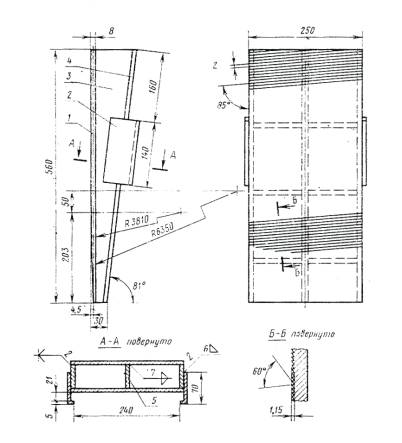 1, 4 - плиты; 2 - направляющая; 3 - ребро; 5 - связь