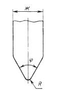 мм; б = от 35 до 65 мм; в = от 125 до 220 мм; Черт. 1 Кромка лезвия ж = от 3,5 до 6 мм; j = от 10 до 60°; R = 0,05 до 0,25 мм; Черт. 2 (Измененная редакция, Изм. № 1, 2). 1.2. В зависимости от предполагаемой нормы степени перетира или указанной в нормативно-технической документации на лакокрасочный материал применяют преимущественно приборы «Клин» (гриндометры) в соответствии с табл. 1. Таблица 1 мкм