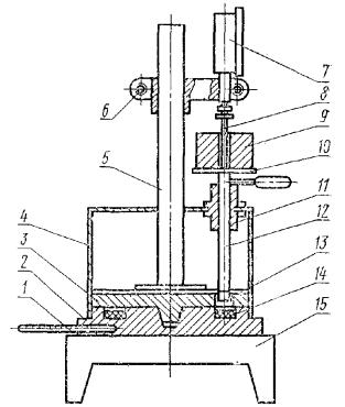(Измененная редакция, Изм. № 4). 3. ПРАВИЛА ПРИЕМКИ3.1. Стекло органическое принимают партиями. За партию органического стекла принимают количество листов и блоков одной марки, одной номинальной толщины, изготовленное по одному технологическому режиму полимеризации, сопровождаемое одним документом о качестве. Документ о качестве должен содержать: наименование и товарный знак предприятия-изготовителя; наименование материала, марку; номер партии, номинальную толщину; массу нетто; дату изготовления; результаты испытаний или подтверждение о соответствии технического органического стекла требованиям настоящего стандарта. (Измененная редакция, Изм. № 3, 4). 3.2. Проверке внешнего вида и размеров подвергают каждый лист партии, проверке толщины - 10 % листов партии. 3.3. Показатели «температура размягчения» и «ударная вязкость» стекла обеих марок изготовитель проверяет периодически не реже одного раза в месяц для листового стекла и не реже одного раза в три месяца для блоков на одном листе или блоке каждой номинальной толщины. 3.4. При получении неудовлетворительных результатов испытаний хотя бы по одному из показателей по нему должны проводиться повторные испытания на удвоенном количестве листов, взятых от той же партии стекла. Результаты повторных испытаний распространяются на всю партию. При получении неудовлетворительных результатов периодических испытаний испытания переводят в приемо-сдаточные до получения положительных результатов на двух партиях подряд. 3.3, 3.4. (Измененная редакция, Изм. № 3, 4). 4. МЕТОДЫ ИСПЫТАНИЙ4.1. Образцы для испытаний вырезают от полосы, отрезанной от одной стороны листа или блока. Допускается вырезать образцы от углов листа или блока. Внешний вид, толщину и физико-механические показатели качества органического стекла определяют на расстоянии не менее 30 мм от края листа. 4.2. Показатели внешнего вида органического стекла в соответствии с табл. 3 проверяют осмотром невооруженным глазом на расстоянии 250 - 400 мм перпендикулярно к поверхности листа при естественном освещении или освещении лампами дневного света. Посторонние включения измеряют любым измерительным инструментом, обеспечивающим измерение с погрешностью не более 0,1 мм. Отпечатки от выщелачивания силикатного стекла определяют наложением трафарета, изготовленного из листа плотной бумаги или картона. Толщину измеряют микрометром по ГОСТ 6507-78 или индикатором часового типа по ГОСТ 577-68, по периметру в четырех точках (в середине каждой стороны) с погрешностью не более 0,05 мм. 4.4. Определение температуры размягчения Температуру размягчения определяют по ГОСТ 15088-83 при испытательной нагрузке (50 ± 1) Н со скоростью повышения температуры 120 °С/ч. Допускается определение температуры размягчения на установке с индикатором в соответствии с пп. 4.4.1 - 4.4.4, при этом за температуру размягчения (Тр) принимают температуру, при которой пуансон диаметром (1,13 ± 0,01) мм под действием постоянной нагрузки (9,81 ± 0,25) Н погружается на определенную глубину в образец при его нагревании. Установка (черт. 1). Индикатор типа ИЧ-10 с ценой деления 0,01 мм по ГОСТ 577-68. Термометры ртутные с ценой деления не более 1 °С по НТД. Термостат, обеспечивающий поддержание температуры с погрешностью ± 3 °С. 4.4.2. Отбор образцов Для испытания применяют образцы в форме дисков диаметром (19,0 ± 0,5) мм, толщиной