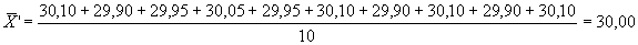соответственно равна 30,10; 29,90; 29,95; 30,05; 29,90; 30,10; 29,90; 30,10; 29,90;