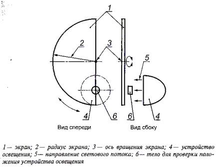 Рисунок 2а - Проверка положения устройства освещения (6.2.5) четвертый абзац изложить в новой редакции: «Напряжение питания лампы 13,5 В. Допускается уменьшать напряжение питания лампы для обеспечения требуемой освещенности. Режим работы лампы при испытаниях: 2 с - включена; 2 с - выключена. Число циклов - пять»; дополнить абзацами (после последнего): «Повторить испытание по внешней засветке. Входе проведения испытания следует провести рукой внутри ящика перед входным окном извещателя. Извещателъ должен выдавать извещение о тревоге. Извещателъ для открытых площадок должен быть размещен в центре вертикальной поверхности внутри темного ящика без стеклянных полотен. Устройство освещения располагают в зоне обнаружения с наименьшим углом наклона к горизонтальной плоскости. Лампу с отражателем (несколько ламп) устанавливают таким образом, чтобы обеспечивалась освещенность 20000+500 лк. Затем необходимо выйти из зоны обнаружения, включить лампы и в течение 1 мин контролировать состояние извещателя. В ходе проведения испытания извещателъ не должен выдавать извещение о тревоге. Далее следует провести рукой перед входным окном извещателя, не перекрывая световой поток от устройства освещения. Извещателъ должен выдавать извещение о тревоге. Устройство освещения располагают на расстоянии 3 м от извещателя вне зоны обнаружения, с наименьшим углом к крайней в зоне обнаружения элементарной чувствительной зоны в горизонтальной плоскости. Лампу с отражателем устанавливают таким образом, чтобы обеспечивалась освещенность 6500+500лк. Режим работы лампы при испытаниях: 2 с - включена; 2 с - выключена. Число циклов - пять. В ходе проведения испытаны извещателъ не должен выдавать извещение о тревоге. Повторить испытание по внешней засветке. В ходе проведения испытания следует провести рукой перед входным окном извещателя. Извещатель должен выдавать извещение о тревоге». Подпункт 6.2.9 изложить в новой редакции: «6.2.9 Длительность извещения о тревоге (по 5.5.2 а) приложения А) При проведении испытания по 6.2.1.2 измерить длительность извещений о тревоге, которая должна быть не менее 2 с». Пункт 6.2 дополнить подпунктами - 6.2.13-6.2.15 (подпункт 6.2.13 дополнить сноской): «6.2.13 Устойчивость к перемещению дополнительной вторичной стандартной цели Испытания проводят в условиях по 6.1, за исключением того, что в качестве стандартной цели используют дополнительную вторичную стандартную цель. Дополнительную вторичную стандартную цель следует устанавливать на высоту не более 100 мм от пола. Положение цели - 0,5 м по горизонтали от проекции извещателя на пол. Испытания повторяют несколько раз, каждый раз увеличивая расстояние от проекции извещателя до вторичной стандартной цели на 0,5 м вплоть до максимальной дальности действия извещателя. Для получения эффекта поперечного движения дополнительной вторичной стандартной цели относительно извещателя необходимо обеспечить либо перемещение цели относительно неподвижного извещателя, либо вращение извещателя относительно неподвижной цели. В этом случае вращение извещателя должно осуществляться со скоростью, эквивалентной поперечной скорости перемещения, равной (1,0 ± 0,1) м/с. Входе испытаний с дополнительной вторичной стандартной целью извещатель не должен выдавать извещение о тревоге (о проникновении). Для проверки наличия эле