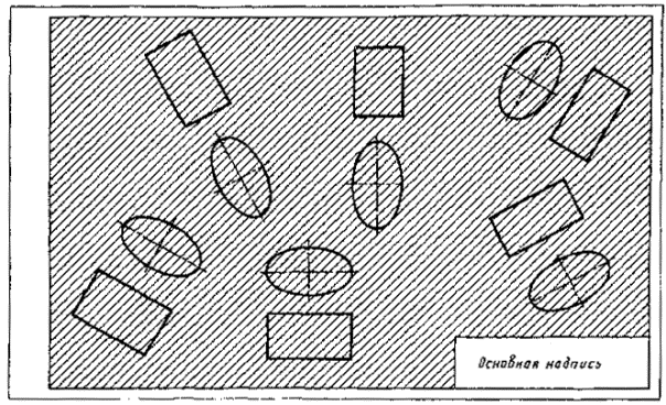 Примечания: 3. В специальных строительных конструктивных чертежах для армирования железобетонных конструкций должны применяться обозначения по ГОСТ 21.501. 5. Наклонные параллельные линии штриховки должны проводиться под углом 45° к линии контура изображения (черт. 2a) или к его оси (черт. 2б), или к линиям рамки чертежа (черт. 2). Черт. 2а Черт. 2б Если линии штриховки, приведенные к линиям рамки чертежа под углом 45°, совпадают по направлению с линиями контура или осевыми линиями, то вместо угла 45° следует брать угол 30° или 60° (черт. 3 и 4). Черт. 2 Черт. 3 Черт. 4 Линии штриховки должны наноситься с наклоном влево или вправо, но как правило, в одну и ту же сторону на всех сечениях, относящихся к одной и той же детали, независимо от количества листов, на которых эти сечения расположены. (Измененная редакция, Изм. № 1). (Измененная редакция, Изм. № 2). 7. Узкие и длинные площади сечений (например, штампованных, вальцованных и других подобных деталей), ширина которых на чертеже от 2 до 4 мм, допускается штриховать полностью только на концах и у контуров отверстий, а остальную площадь сечения - небольшими участками в нескольких местах (черт. 5 и 6). Линии штриховки стекла (черт. 7) следует наносить с наклоном 15-20° к линии большей стороны контура сечения. Черт. 5 Черт. 6 Черт. 7 (Измененная редакция, Изм. № 4) 8. Узкие площади сечений, ширина которых на чертеже менее 2 мм, допускается показывать зачерненными с оставлением просветов между смежными сечениями не менее 0,8 мм (черт. 8, 9). В строительных чертежах допускается на сечениях незначительной площади любой материал обозначать как металл или вообще не применять обозначение, сделав поясняющую надпись на поле чертежа. Черт. 8 Черт. 9 9. Обозначение, указанное в п. 3 табл. 1, и обозначение засыпки в сечении выполняют от руки. (Измененная редакция, Изм. № 1). При штриховке «в клетку» для смежных сечений двух деталей расстояние между линиями штриховки в каждом сечении должно быть разным. В смежных сечениях со штриховкой одинакового наклона и направления следует изменять расстояние между линиями штриховки (черт. 10) или сдвигать эти линии в одном сечении по отношению к другому, не изменяя угла их наклона (черт. 11). Черт. 10 Черт. 11 11. При больших площадях сечений, а также при указании профиля грунта допускается наносить обозначение лишь у контура сечения узкой полоской равномерной ширины (черт. 12). (Измененная редакция, Изм. № 1). Черт. 12 ИНФОРМАЦИОННЫЕ ДАННЫЕ 1. РАЗРАБОТАН И ВНЕСЕН Комитетом стандартов, мер и измерительных приборов при Совете Министров СССР РАЗРАБОТЧИКИ В.Р. Верченко, Е.А. Панфилов, Ю.И. Степанов, Я.Г. Старожилец, Б.Я. Кабаков, Л.В. Матвеев, Н.И. Ермин, В.Н. Взоров, М.Г. Арановский 4. Взамен ГОСТ 3455-59 и ГОСТ 11633-65 5. ССЫЛОЧНЫЕ НОРМАТИВНО-ТЕХНИЧЕСКИЕ ДОКУМЕНТЫ