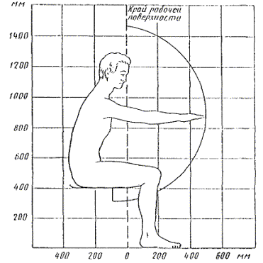 Постановлением Государственного комитета стандартов Совета Министров СССР от 26 апреля 1978 г. № 1102 срок введения установлен с 01.01. 1979 г. Настоящий стандарт устанавливает общие эргономические требования к рабочим местам при выполнении работ в положении сидя при проектировании нового и модернизации действующего оборудования и производственных процессов. Стандарт не устанавливает требования к рабочим местам транспортных средств, машин и оборудования, перемещающихся в процессе работы, а также на рабочие места для учащихся, проходящих производственную практику, и военнослужащих. На основе общих требований настоящего стандарта должны разрабатываться стандарты и нормативно-технические документы, устанавливающие требования эргономики к конкретным рабочим местам. Термины, используемые в настоящем стандарте, - по ГОСТ 16035-70, ГОСТ 21034-75 и справочному приложению к настоящему стандарту. 1. ОБЩИЕ ПОЛОЖЕНИЯ1.1. Рабочее место для выполнения работ сидя организуют при легкой работе, не требующей свободного передвижения работающего, а также при работе средней тяжести в случаях, обусловленных особенностями технологического процесса. Категории работ - по ГОСТ 12.1.005-76. 1.2. Конструкция рабочего места и взаимное расположение всех его элементов (сиденье, органы управления, средства отображения информации и т.д.) должны соответствовать антропометрическим, физиологическим и психологическим требованиям, а также характеру работы. 1.3. Рабочее место должно быть организовано в соответствии с требованиями стандартов, технических условий и (или) методических указаний по безопасности труда. 2. РАЗМЕРНЫЕ ХАРАКТЕРИСТИКИ РАБОЧЕГО МЕСТА2.1. Конструкцией рабочего места должно быть обеспечено выполнение трудовых операций в пределах зоны досягаемости моторного поля. Зоны досягаемости моторного поля в вертикальной и горизонтальной плоскостях для средних размеров тела человека приведены на черт. 1 и 2. Зона досягаемости моторного поля в вертикальной плоскости Черт. 1 2.2. Выполнение трудовых операций «часто» и «очень часто» должно быть обеспечено в пределах зоны легкой досягаемости и оптимальной зоны моторного поля, приведенных на черт. 3. Примечание. Частоту выполнения операций принимают: очень часто - две и более операций в 1 мин; часто - менее двух операций в 1 мин, но более двух операций в 1 ч; редко - не более двух операций в 1 ч. Зона досягаемости моторного поля в горизонтальной плоскости при высоте рабочей поверхности над полом 725 мм Черт. 2 Зоны для выполнения ручных операций и размещения органов управления 1 - зона для размещения наиболее важных и очень часто используемых органов управления (оптимальная зона моторного поля); 2 - зона для размещения часто используемых органов управления (зона легкой досягаемости моторного поля); 3 - зона для размещения редко используемых органов управления (зона досягаемости моторного поля) Черт. 3 Номограмма зависимости высоты рабочей поверхности для разных видов работ (1 - 4), пространства для ног (5) и высоты рабочего сиденья (6) от роста человека Черт. 4 2.3. При проектировании оборудования и организации рабочего места следует учитывать антропометрические показатели женщин (если работают только женщины) и мужчин (если работают только мужчины); если оборудование обслуживают женщины и мужчины - общие средние показатели женщин и 