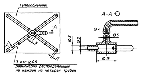 где t1 - температура наружной поверхности в точках измерения, °С; t2 - температура воздуха в помещении, °С. 5.5.7. Повышение температуры воды после прекращения ее протекания (п. 7 табл. 1) определяют при работе аппарата на номинальной тепловой мощности и расходе воды, отрегулированном так, чтобы разность температур горячей и холодной воды составляла (35 ± 1) °С. После установления указанной температуры быстро закрывают кран горячей воды и открывают его по истечении 10 с, после чего с помощью термометра быстрой индикации измеряют максимальную температуру воды. Аппарат должен работать до достижения исходного режима. Те же самые измерения проводят с выдержкой времени 20, 30, 40 с и т. д., увеличивая ее на 10 с до тех пор, пока не будет зафиксирована максимальная температура дополнительного нагрева воды. 5.5.8. Проверку аппарата на соответствие требованию п. 8 табл. 1 проводят при его работе на номинальном давлении газа. При проверке регулятор расхода воды (при его наличии) устанавливают на максимальный и минимальный расходы. 5.5.9. Проверку аппарата на соответствие требованию п. 3.2 следует проводить по методике РД 51-02-118 «Аппаратура бытовая, работающая на газовом топливе. Программа и методика климатических испытаний». 5.5.10. Возможность доступа к основной и запальной горелкам, предохранительным и регулирующим устройствам, а также их съем без отсоединения аппарата от коммуникаций, исключение возможности случайного смещения основной и запальной горелок (п. 3.3, перечисления 1 и 4) следует проверить при снятой лицевой части кожуха аппарата визуально. 5.5.11. Удобство и безопасность зажигания запальной горелки (п. 3.3, перечисление 2) следует проверять спичкой по ГОСТ 1820. 5.5.12. Возможность наблюдения за работой горелок (п. 3.3, перечисление 3) и возможность появления конденсата на теплообменнике (п. 3.3, перечисление 8) следует проверять визуально во время работы аппарата. 5.5.13. Проверку наличия или отсутствия выброса пламени основной горелки за пределы кожуха при ее зажигании (п. 3.3, перечисление 6) следует проводить визуально в момент включения и выключения основной горелки при максимальном давлении газа перед аппаратом. 5.5.14. Проверку аппарата на соответствие требованию п. 3.7 следует проводить при помощи заборного зонда, устанавливаемого в местах возможных утечек газа. Содержание СО2 в отобранной пробе не должно превышать содержания СО2 в помещении более чем на 0,1 %. 5.5.15. Работоспособность регулятора расхода или давления газа (п. 3.9) должна проверяться путем изменения давления газа перед аппаратом от минимальной до максимальной величин с интервалом измерения 196 Па. По полученной зависимости определяют отклонение расхода газа от номинальной величины. 5.5.16. Проверку на соответствие требованию п. 3.10 следует проводить путем изменения давления воды перед аппаратом от 50 до 600 кПа с интервалом 100 кПа. По полученной зависимости определяют отклонение расхода воды от номинального значения. Испытание следует проводить при полностью открытом кране на выходе. 5.5.17. Проверка герметичности газовых коммуникаций аппарата (п. 3.12). 5.5.17.1. При периодических и типовых испытаниях проверку герметичности газовых коммуникаций следует проводить объемным методом (черт. 3). Продолжительность испытания - не менее 5 мин. При этом следует проверять герметичность: коммуникаций; запорного устройства