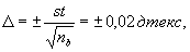 где s - среднеквадратическое отклонение, равное 0,125 дтекс;
