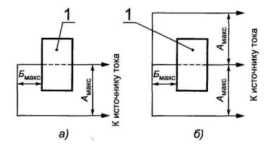 где I2нам - ток намагничивания, А, измеренный по 9.8.1; I2ном - номинальный вторичный ток, А; K - KБном или Kном; I2нам(%K) - в соответствии с требованиями 6.5. 9.9 Испытание на нагрев при продолжительном режиме работы 9.9.1 Трансформаторы на номинальное напряжение 0,66 кВ испытывают по ГОСТ 2933, а на номинальные напряжения от 3 до 750 кВ включительно - по ГОСТ 8024 при наибольшем рабочем первичном токе. Примечание - Допускается испытание трансформаторов на номинальное напряжение 0,66 кВ проводить по ГОСТ 8024. 9.9.2 Испытание проводят при нормальной температуре испытаний по ГОСТ 15150, если в стандартах на трансформаторы конкретных типов не предусмотрены иные условия. 9.9.3 При испытании трансформаторов, имеющих собственную первичную обмотку, ток к выводам первичной обмотки следует подводить проводами или шинами длиной не менее 1,5 м. Трансформаторы, предназначенные для эксплуатации с конкретным типом шин, допускается испытывать без учета температуры проводников, подводящих ток к первичной обмотке. В этом случае проводники, подводящие ток при испытании, должны соответствовать условиям их эксплуатации. 9.9.4 Шинные, втулочные, встроенные и разъемные трансформаторы испытывают в первичном токоведущем контуре согласно рисунку 1а или 1б. Необходимость испытаний в контуре, вид контура, а также размеры Амакс и Бмакс (которые при испытании не должны быть превышены), должны быть установлены в стандартах на трансформаторы конкретных типов. 9.9.5 Трансформаторы с несколькими коэффициентами трансформации, получаемыми переключением секций первичной обмотки, испытывают при наибольшем коэффициенте трансформации. 9.9.6 Вторичные обмотки трансформаторов при испытании должны быть замкнуты на номинальную нагрузку, на амперметр либо накоротко. 9.9.7 Значения превышения температур обмоток трансформаторов на частоту 60 Гц следует корректировать следующим образом: а) для трансформаторов до 1000 А или для трансформаторов без собственной первичной обмотки на любые номинальные токи