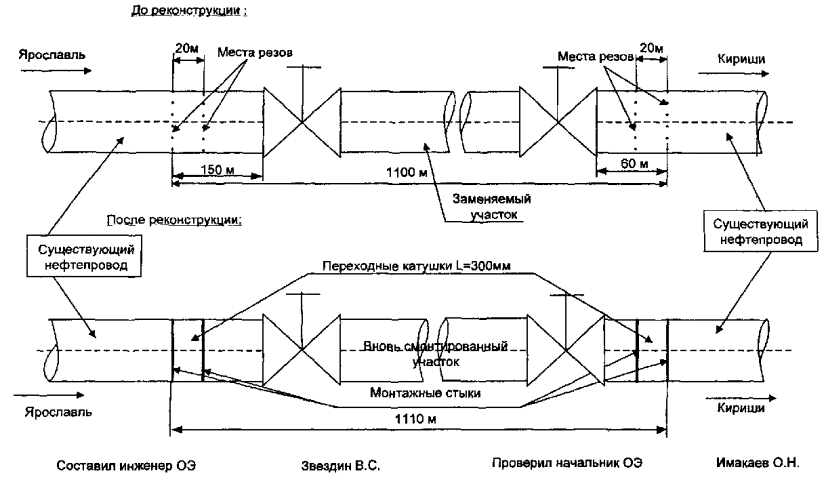Монтажная схема замены участка нефтепровода Ярославль - Кириши на 89-90 км (р. Волга, L = 1110 м)