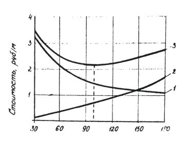 потерь; 2 - стоимость капитальных затрат; 3 - суммарная кривая
