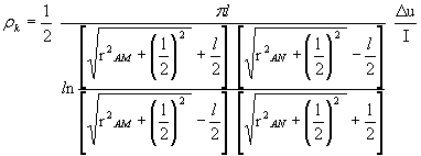 трети питающей линии АВ. Приемные электроды разносятся на концы отрезка l и рассчитываются значения ρк по формуле: Значение ρк рассчитывается по формуле: