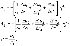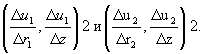пара значений градиентов в двух точках: Разность градиентов по r и z дает приращение градиента
