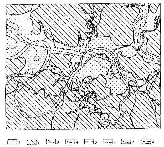 Схематическая карта инженерно-геологического районирования центральной части Москвы по геологическому строению и условиям взаимосвязи водоносных горизонтов