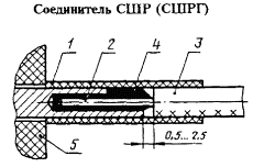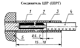 Дата введения 01.07.80 Стандарт устанавливает требования к монтажу приборных частей электрических соединителей ШР, СШР, СШРГ и ШРГ. Термины, применяемые в стандарте, соответствуют ГОСТ 21962 и ГОСТ 14312. 2. Монтаж соединителей ШР, СШР, СШРГ и ШРГ должен производиться в соответствии с требованиями настоящего стандарта, нормативной документации, конструкторской и технологической документации, утвержденной в установленном порядке. 3. Монтаж однотипных соединителей в изделии должен быть идентичным. 4. Для обеспечения идентичности монтажа соединителей следует изготовлять контрольный образец, утвержденный в установленном порядке. Для опытных образцов изделий контрольные образцы монтажа не устанавливают. 5. Требования к монтажу приборных частей соединителей ШР, СШР, СШРГ и ШРГ, установленные настоящим стандартом, должны быть указаны в конструкторской документации. Пример: «Технические требования к электромонтажу приборных частей соединителей ШР по ГОСТ 23591». 6. Дополнительные требования к монтажу соединителей, не снижающие его качество, должны быть указаны в конструкторской и технологической документации. 7. Площадь сечения проводов, подводимых к контакт-деталям (далее в тексте - контакт) соединителей, не должна превышать площади сечения, установленной в технических условиях на соединители конкретного типа. (Измененная редакция, Изм. № 2). 8. Если в одно отверстие контакта соединителя необходимо впаять несколько проводов меньшего сечения, то жилы всех проводов должны быть скручены вместе, а суммарный диаметр облуженных проводов должен быть меньше диаметра соответствующего отверстия в контакте соединителя. 9. Длина паяной части провода, входящего в отверстие крепежной части контакта, должна быть равна длине монтажной части внутренней полости контакта и соответствовать черт. 1, 2. (Измененная редакция, Изм. № 1). 10. При внутреннем диаметре хвостовика контакта свыше 2,0 мм, а также для проводов с полиэтиленовой изоляцией оголение провода от изоляции не должно быть более 3,0 мм. 11. При монтаже соединителей не допускается применять провода, у которых наружный диаметр по изоляции вместе с надеваемой на провод изоляционной трубкой больше, чем расстояние между осями контактов в соединителе. 1 - изоляционная трубка; 2 - жила; 3 - провод; 4 - припой; 5 - соединитель Черт. 1 1 - припой; 2 - жила; 3 - изоляционная трубка; 4 - провод; 5 - соединитель Черт. 2 12. Провода, заделываемые в соединители, должны быть закреплены у корпуса соединителя с применением кронштейнов или на панели в соответствии с черт. 3 - 5. 1 - соединитель; 2 - жгут; 3 - хомут; 4 - панель Черт. 3