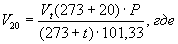 Vt - объем воздуха, отобранный для анализа, л; Р - барометрическое давление, кПа (101,33 кПа = 760 мм рт. ст.); t - температура воздуха в месте отбора пробы, °С. Для удобства расчета V20 следует пользоваться таблицей коэффициентов (приложение 2). Для приведения воздуха к стандартным условиям надо умножить Vt на соответствующий коэффициент. Коэффициенты для приведения объема воздуха к стандартным условиям