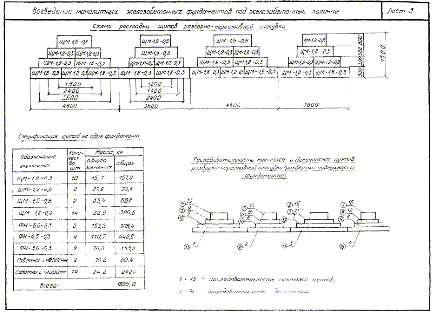 опалубки: унифицированной разборно-переставной опалубкой «Монолит-77» (проект