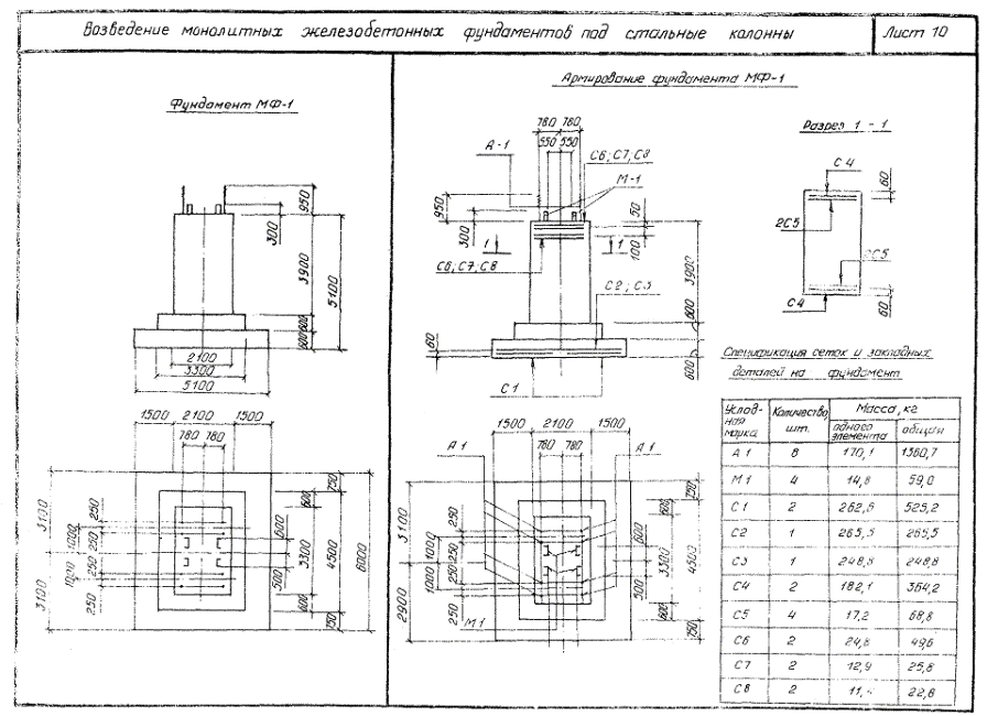 железобетонных фундаментов под железобетонные и стальные колонны. Приведены