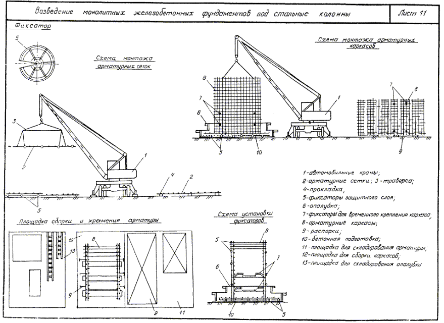 работ при возведении фундаментов. Представлены конструктивные схемы по
