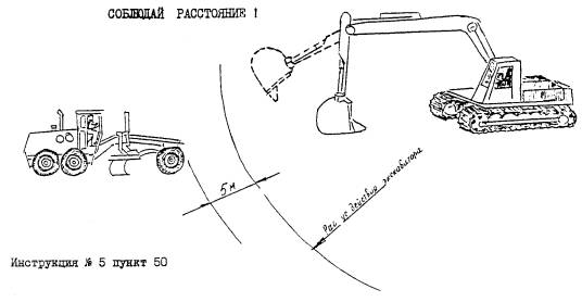 46. Развороты автогрейдера выполняют на минимальной скорости. Нельзя разворачивать автогрейдер (прицепной грейдер) с заглубленным или загруженным отвалом. 47. Запрещается разрабатывать глинистые грунты в дождливую погоду, а также при наличии поперечных уклонов. 48. При обнаружении на участке кабелей, труб, подземных сооружений или неизвестных предметов машинист обязан прекратить работу и вызвать руководителя работ. 49. Приступать к работе около экскаватора или крана разрешается после того, как ковш экскаватора будет опущен на землю, а стрела крана повернута в сторону, противоположную участку работы автогрейдера (прицепного грейдера). 50. При работе в комплексе с экскаватором запрещается нахождение автогрейдера в радиусе действия экскаватора плюс 5 м.