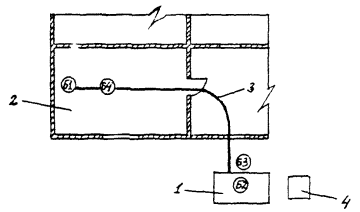 4.3. Схема организация рабочего места Условные обозначения. 1. Штукатурная станция. 2. Поверхность основания пола. 3. Резиновый напорный рукав. 4. Емкость для воды 5 м3. Б1, Б2, Б3, Б4 - рабочие места бетонщиков. Станция штукатурная (реконструированная) ПШСФ-2