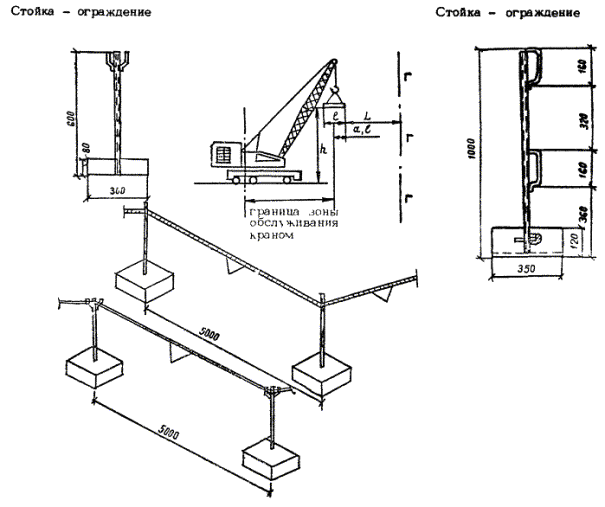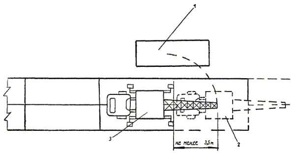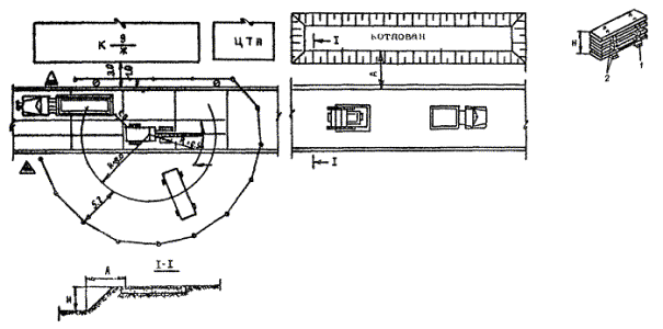 На данном листе показан вариант укладки дорожных плит пневмоколесными кранами К-161 и КС-4362 РАБОТА КРАНОВ БЕЗ ВЫНОСНЫХ ОПОР ЗАПРЕЩАЕТСЯ! Лист 5ТЕХНОЛОГИЧЕСКАЯ СХЕМА УСТРОЙСТВА ВРЕМЕННОЙ ДОРОГИ ИЗ СБОРНЫХ ЖЕЛЕЗОБЕТОННЫХ ПЛИТ ПДП 6,0´1,75 (С ПЕТЛЯМИ И БЕЗ ПЕТЕЛЬ)Условные обозначения: 1 - автомобиль ЗИЛ-130-В1 с полуприцепном У-30; 2 - бульдозер; 3 - автосамосвал; 4 - плиты; 5 - подкладки из досок 15´4 см; 6 - прокладки из бруса 8´8 см На данном листе показан вариант укладки плит пневмоколесными кранами К-161 и КС-4362. Краны укладывают плиты перед собой и перемещаются по уложенным плитам, автомобиль задним ходом следует за краном. РАБОТА КРАНОВ БЕЗ ВЫНОСНЫХ ОПОР ЗАПРЕЩАЕТСЯ! Лист 6СХЕМА УСТАНОВКИ И ПЕРЕУСТАНОВКИ КРАНА ПРИ МОНТАЖЕ ПЛИТ ПДП 6´1,75Условные обозначения: 1 - штабель плит или автомашина с плитами; 2 - место последующей стоянки крана; 3 - кран Лист 7СХЕМА ОГРАЖДЕНИЯ ОПАСНЫХ ЗОН ОГРАЖДЕНИЯ ОПАСНЫХ ЗОНПРИМЕЧАНИЕ. При ограничении высоты подъема груза стреловые краны подбираются таким образом, чтобы при подъеме груза на максимальном необходимом вылете крюка более высоты «Н» на 0,5 м срабатывал концевой выключатель груза. При высоте подъема груза до: 4 м a = 2,2 м; 6 м a = 2,8 м 10 м a = 4,0 м; 20 м a = 7,0 м, но не менее высоты поднимаемого груза (a = 0,3 h + 1 м) От 20 до 100 м a = 10 м Лист 8СХЕМА МЕТАЛЛИЧЕСКОГО ШАБЛОНА ДЛЯ КОНТРОЛЯ ШИРИНЫ ШВОВЛист 9СХЕМА ЗАДЕЛКИ ШВОВ МЕЖДУ ПЛИТАМИПлощадка для стоянки машин СХЕМЫ ПЛОЩАДОК ДЛЯ СТОЯНКИ И РАЗВОРОТА АВТОМАШИН ПРИ СТРОИТЕЛЬСТВЕ ВРЕМЕННЫХ ДОРОГ Условные обозначения: 1 - плиты ПДП 6,0´1,75; 2 - технологический слой 3 - 5 см; 3 - подстилающий слой; 4 - тиоколовая или резинобитумная мастика «Изол» (И-2) на 1/3 высоты плиты; 5 - цементно-песчаная смесь на 2/3 высоты плиты |