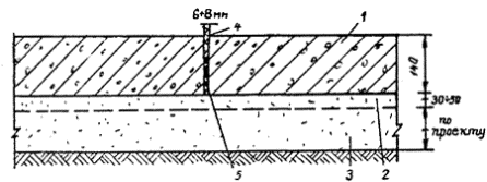 2.8. Для предотвращения смерзания песка в зимнее время рекомендуется его пропитка 2-процентным раствором хлористого кальция. 2.9. Постоянные внутриквартальные дороги устраивают сборными из плит (см. табл. 1), а также из монолитного бетона. В зимнее время дороги необходимо устраивать только сборного типа. 2.10. Временные внутриквартальные дороги устраивают в течение всего года из плит (см. табл. 1), как правило, по трассам постоянных дорог. 2.11. Временные дороги, уложенные по трассам постоянных дорог, из плит по окончании их эксплуатации или на последней стадии их оборачиваемости следует использовать как основание постоянные дорог. 2.12. При строительстве сборных постоянных внутриквартальных дорог и проездов укладку плит осуществляют по технологическому слою толщиной 3 - 5 см. Схемы организации работ приведены на листах 1, 3, 4. Строительство временных дорог 2.13. При укладке плит на прямых участках обеспечивают строгое выравнивание граней с контролем по натянутой проволоке или шнуру. 2.14. Плиты укладывают продольными и поперечными гранями вплотную одна к другой. 2.15. Ширина продольных швов между плитами по верху, образуемая за счет технологических скосов плиты, не должна превышать 20 мм, а ширина поперечных швов - 8 мм. 2.16. Нижняя поверхность должна контактировать с основанием по всей площади, для чего выполняют пробную укладку. 2.17. Швы заполняют цементно-песчаной смесью на всю высоту, а места примыкания к постоянным дорогам заполняют щебнем, засыпают песком и уплотняют, при необходимости плиты сваривают между собой. 2.18. Монтаж плит производят самоходными кранами. Схемы организации работ приведены на листах 5, 6, 7. 2.19. Автомобильные и пневмоколесные краны укладывают плиты с готового покрытия способом «от себя», гусеничные краны, как правило, должны работать с грунта. 2.20. Разборку (раздвижку) плит производят плитоподъемником на тракторе Т-180 треста Мосстроймеханизация-1, после чего очищают грани плит и монтажные узлы, стропуют и грузят на автотранспорт с вывозом к месту укладки их или на склад. 2.21. Монтаж рекомендуется вести с колес. 2.22. Монтаж плит производят четырехветвевыми стропами или при помощи одноветвевого стропа (чалки) беспетлевых плит. Схема строповки плит приведена на листе 2. Строительство постоянных дорог 2.23. Укладку плит в покрытие постоянных внутриквартальных дорог выполняют аналогично укладке их в покрытие временных дорог. 2.24. После укладки плит выполняют работы по установке бортового камня (кроме плит марок ПДПБ). 2.25. После устройства покрытия производится проверка его ровности и размеров швов. В случае, если высота уступов между плитами 3 мм, производится подъем плит и удаление (или подсыпка) цементно-песчаной смеси. Схема шаблона для контроля швов приведена на листе 8. 2.26. Омоноличивание покрытия из плит ПДП и ПДПБ производят после сварки закладных деталей смежных плит. 2.27. После выравнивания и омоноличивания покрытия производят заделку швов тиоколовой или резинобитумной мастикой «Изол» (И-2). Состав мастики И-2 в % по весу: битум БНД-60/90 - 75 резиновая крошка - 20 кумароновая смола - 5 2.28. Швы заполняют на 2/3 высоты цементно-песчаной смесью и на 1/3 высоты мастикой. Швы перед заполнением должны быть тщательно очищены от пыли и грязи с помощью электрощеток и путем продувки сжатым воздухом. 2.29. Мастику И-2 заливают в швы в разогретом сост