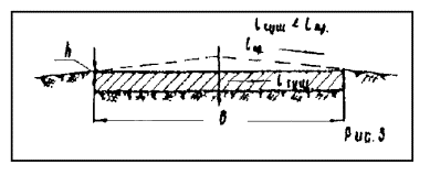 Рис. 4 В зависимости от указанных выше случаев, вычисление рабочей отметки, относящейся к оси покрытия, при проектировании продольного профиля производится следующим образом: для первого и второго случаев - рабочая отметка равна толщине проектируемого слоя износа, т.е. Н = h слоя износа. Для третьего случая - рабочая отметка определяется по формуле: