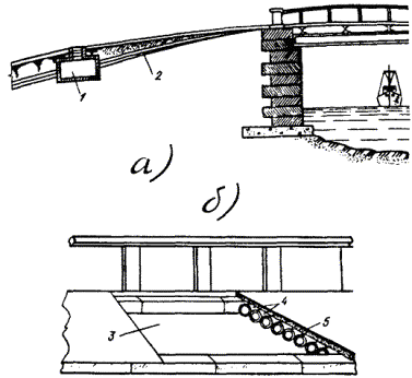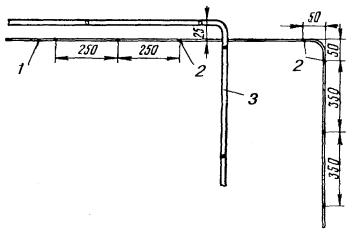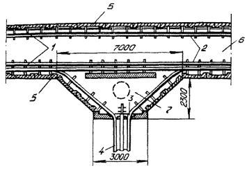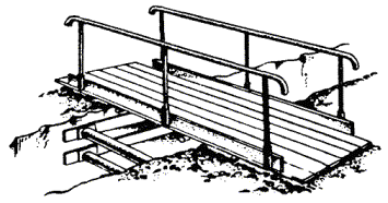 Рис. 2.3б. Стойка для установки щита инвентарного ограждения 2.25. При необходимости производства земляных работ на проезжей части дороги организация, производящая эти работы, должна согласовать с местными органами ГАИ схему ограждения места работы и расстановки дорожных знаков с указанием видов работ и сроков их выполнения. Место производства работ, затрудняющее движение транспорта, должно быть ограждено днем знаками «тихий ход», а с наступлением темноты и при густом тумане - красным световым сигналом. Световые сигналы устанавливают на концах траншей и у котлованов. 2.26. Для обеспечения нормального прохода транспорта и пешеходов при разрытии улиц, дорог и проездов над траншеями должны устанавливаться транспортные мосты (рис. 2.4) и пешеходные мостики с перилами (рис. 2.5). Транспортные мосты должны быть рассчитаны на проезд через улицу безрельсового транспорта с нагрузкой на ось, равной 10 т, а при въезде во дворы - 7 т. Пешеходный инвентарный мостик должен иметь размеры: ширину не менее 0,75 м, высоту с перилами - 1,0 м. Длина мостов и мостиков должна перекрывать траншею или котлован за пределы естественного откоса с тем, чтобы при их использовании не происходило обрушение стенок. Траншеи и котлованы под транспортными мостами должны быть закреплены распорами. Рис. 2.4. Мост транспортный Рис. 2.5. Пешеходный мостик 2.27. Место производства работ под трамвайными путями должно быть ограждено специальными ограждениями и сигналами, устанавливаемыми на расстоянии, предусмотренном правилами по технике безопасности при производстве этих работ. ВСКРЫТИЕ И ВОССТАНОВЛЕНИЕ ДОРОЖНЫХ И УЛИЧНЫХ ПОКРОВОВ2.28. Вскрытие дорожных и уличных покровов является наиболее трудоемким рабочим процессом, предшествующим выполнению земляных работ и поэтому нуждающимся в максимальной механизации. 2.29. Вскрытие асфальтовых покровов производится с помощью асфальторезов и пневматического отбойного инструмента. Для вскрытия бетонных покровов и оснований улиц и дорог следует применять бетоноломы. Отбойные молотки и бетоноломы приводятся в действие передвижными компрессорными станциями. 2.30. Булыжные мостовые можно вскрывать с помощью одноковшовых экскаваторов или с применением пневматического отбойного инструмента. 2.31. Вскрытие уличных покровов производится на площади, определяемой размерами траншей или котлованов с учетом норм дополнительного вскрытия покровов, приведенных в табл. 2.3. 2.32. При производстве работ в парках и скверах верхний растительный покров рассматривается как уличный покров. 2.33. Полученные от вскрытия уличных покровов материалы, а также другие верхние слои почвы во избежание их засыпки и засорения вынимаемым из траншеи грунтом следует складывать на расстоянии не менее 1 м от края траншеи со стороны, противоположной отвалу грунта. 2.34. Временное замощение траншей и котлованов на проезжей части должно производиться строительной организацией, выполняющей земляные работы, сразу же после их завершения. Окончательное восстановление уличных покровов производится специализированными организациями по договорам со строительными организациями. Таблица 2.3 Нормы дополнительного вскрытия уличных покровов