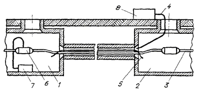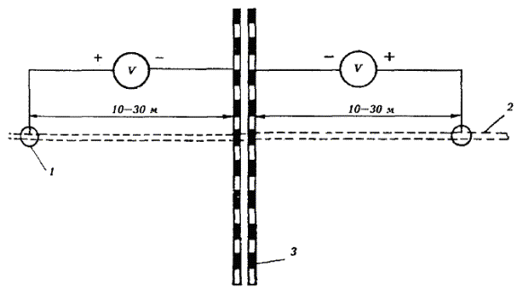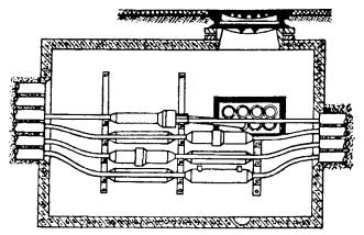 Примечания: 1. Для свинцовых оболочек кабелей связи без защитных покровов, проложенных в кабельной канализации, допускается по краям зоны защиты смещение минимального защитного потенциала от стационарного не менее 100 мВ. 2. При катодной поляризации стальной брони кабелей связи максимальное значение разности потенциалов между броней и медносульфатным электродом сравнения должно быть не более 2,5 В, а по краям зоны защиты смещение минимального потенциала от стационарного не менее 50 мВ. 3. Для кабелей связи с металлическими оболочками и защитными покровами шлангового типа поверх оболочки, а также поверх оболочки и брони электрохимическая защита не проводится. Катодная поляризация таких кабелей в опасных зонах осуществляется лишь в случаях нарушения сплошности защитного покрова и понижения сопротивления изоляции его ниже норм, установленных ОСТ 45.01-86, если в процессе эксплуатации нельзя осуществить ремонт или замену кабеля. 17.9. Одновременно с регулировкой режима работы защитных устройств на подземных сооружениях связи должны быть измерены потенциалы по отношению к земле на других, расположенных рядом, подземных металлических сооружениях. 17.10. Катодная поляризация подземных металлических сооружений связи должна осуществляться так, чтобы исключить вредное влияние ее на соседние подземные металлические сооружения. Примечание. Вредным влиянием катодной поляризации защищаемого сооружения на соседние металлические сооружения считается уменьшение по абсолютной величине максимального защитного потенциала на соседних металлических сооружениях, имеющих катодную поляризацию; появление опасности электрохимической коррозии на соседних подземных металлических сооружениях, ранее не требовавших защиты от нее; смещение в любую сторону величины стационарного потенциала на кабелях связи, не имеющих катодной поляризации, или возникновение в броне или оболочке тока, которого ранее не было. 17.11. В случаях, когда при осуществлении катодной поляризации возникает вредное влияние на соседние металлические сооружения, необходимо применить другие меры по устранению вредного влияния, рекомендованные проектной организацией, или осуществить совместную защиту этих сооружений. 17.12. После окончания выполнения всех работ по защите от коррозии, предусмотренных проектом, по результатам контрольных измерений потенциалов на подземных металлических сооружениях связи, а также на соседних подземных металлических сооружениях, при наличии последних, должен быть составлен акт об эффективности работы защитных устройств, представляемый в числе других исполнительных документов приемочной комиссии. ПЕРЕПАЙКА ОБОЛОЧЕК И БРОНИ КАБЕЛЕЙ СВЯЗИ17.13. Для проведения электрических измерений, осуществления совместной защиты и устранения возможного влияния защищенных катодной поляризацией кабелей связи на соседние незащищенные, все оболочки кабелей связи, проложенные в одной кабельной канализации или оболочки и броня кабелей, проложенных в одной траншее, перепаивают между собой. Примечание. Перепайке с другими кабелями не подлежат кабели связи с покровами шлангового типа (Шп и Бп Шп). 17.14. Перепайку оболочек кабелей осуществляют: · на всех кабелях, проложенных в кабельной канализации; · в помещении ввода кабелей телефонной станции, во всех шкаф