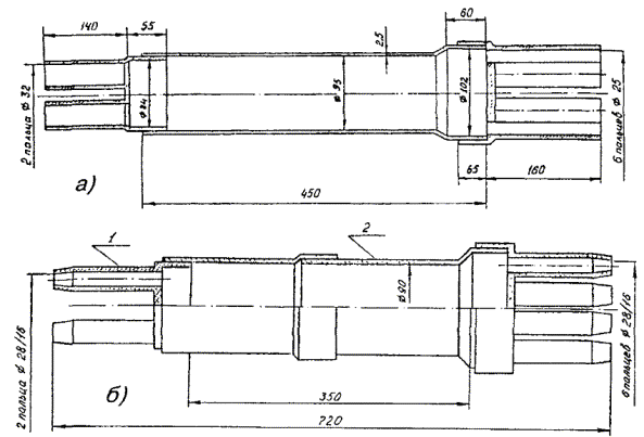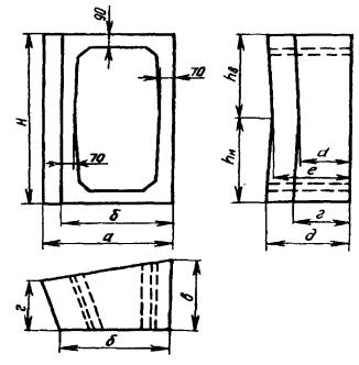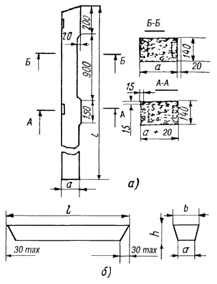Могут также применяться железобетонные опоры центрифугированные круглые. 8.19. Для удлинения опор и с целью экономии древесины следует применять железобетонные приставки прямоугольного типа ПР с ненапряженной стержневой арматурой (рис. 8.4) и таврового типа ПТ с предварительно напряженной стержневой арматурой. Рис. 8.4. Приставки железобетонные: а) прямоугольного типа ПР; б) таврового типа ПТ Справочные данные о железобетонных приставках приведены в табл. 8.3а. Таблица 8.3а Справочные данные железобетонных приставок