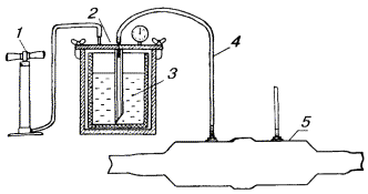 РАЗДЕЛ 16ИСПЫТАНИЕ ГЕРМЕТИЧНОСТИ КАБЕЛЕЙ И ПОСТАНОВКА ИХ ПОД ПОСТОЯННОЕ ИЗБЫТОЧНОЕ ВОЗДУШНОЕ ДАВЛЕНИЕОБЩИЕ ПОЛОЖЕНИЯ16.1. Строительные длины кабелей ГТС емкостью от 100 пар и более, высокочастотных и низкочастотных симметричных кабелей с металлическими и полиэтиленовыми оболочками, находящиеся на барабанах и после их прокладки, а также смонтированные секции, кабельные линии, усилительные (регенерационные) участки должны содержаться под избыточным воздушным давлением. 16.2. Для проверки герметичности оболочки кабеля, муфт и контейнеров и постановки кабельных линий в процессе монтажа под избыточное давление применяются: · компрессорные установки КМ-77-2М, полевые нагнетательно-осушительные установки ПНОУ-3, баллоны высокого давления для сжатого воздуха или азота емкостью 40, 12 и 5 л на рабочее давление 15 МПа (150 кгс/см2) с редуктором и осушительным устройством, установки для ручной накачки кабеля КЛ-67М - для осушки и нагнетания воздуха; · манометры показывающие - для контрольных измерений при оценке герметичности кабеля, контейнеров и элементов оборудования; · манометры образцовые - для проверки исправности показывающих манометров; · регенерационные установки - для восстановления осушающих свойств силикагеля; · устройства переносные подкачивающие УПП - для определения повреждения оболочки кабеля; · ультразвуковые течеискатели УЗТИ - для определения мест негерметичности на открытых участках кабеля; · - галоидные (галогенные) течеискатели БГТИ-7 (БГТИ-5) - для определения индикаторного газа хладона при проведении работ по отысканию мест негерметичности оболочки кабеля; · полевые установки для ввода индикаторного газа и воздуха в кабель ПУВИГ - для подачи в кабель под давлением индикаторного газа хладона или воздуха; · зарядные углекислотные станции ЗС - для переливания жидкого индикаторного газа (хладона) из транспортных баллонов в баллоны емкостью 5 л. 16.3. Для содержания кабелей ГТС и симметричных кабелей под постоянным избыточным давлением применяются: компрессорно-сигнальные установки КСУ-2М, установки осушительные нагнетательные для кабелей ОНУК, стационарные компрессорные установки. 16.4. Герметичная концевая заделка кабелей осуществляется: · на кабелях типа ТГ, ТСШп, ТПСШп - с помощью свинцовых муфт типа МГ, · на кабелях типа ТПП - с помощью полиэтиленовых газонепроницаемых муфт, · на кабелях типа МКС - с помощью газонепроницаемых муфт типов ГМС и ГМСИ. 16.5. В процессе строительства линий связи проверке на герметичность должны подвергаться: · кабели на барабанах в складских пунктах, строительные длины кабеля до и после прокладки и непосредственно перед сращиванием, длины кабелей после затягивания в каналы кабельной канализации, смонтированные участки кабеля в канализации протяженностью до 0,5 км, смонтированные шаги (секции), усилительные (регенерационные) участки, межстанционные и магистральные кабели местной сети емкостью 100 пар и более; · газонепроницаемые муфты перед монтажом; · соединительные, разветвительные, газонепроницаемые и другие муфты после их монтажа; · пупиновские ящики и удлинители на складском пункте, до и после монтажа; · контейнеры для систем передачи до и после монтажа; · установки для содержания кабелей под постоянным воздушным давлением; · воздуховоды после монтажа. Если непосредственно после ок
