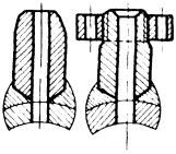где дмак, дмин, дном - соответственно максимальный, минимальный и номинальный наружные диаметры. 2.2.7. Все виды заготовок после ковки, штамповки, а также заготовки из сортового проката должны подвергаться термической обработке. 2.2.8. Входной контроль и требования к трубам, применяемым для изготовления деталей трубопроводов, - по ОСТ 26-01-136-81. 2.2.9. Допускается применение ковано-сверленых труб, поставляемых по специальным техническим условиям, утвержденным в установленном порядке. 2.3. Требования к готовым деталям 2.3.1. На поверхности готовых деталей не допускаются трещины и плены. 2.3.2. Фаски и недорезы внутренней резьбы - по ГОСТ 10549-80. Угол заборной части инструмента a = 20°. Внутренняя резьба должна иметь чистую гладкую поверхность без заусенцев, рванин, острых кромок и рисок. Наличие ниток с сорванной или неполной резьбы, а также дефектов, препятствующих ввинчиванию проходного калибра, не допускается. 2.3.3. Присоединительные концы тройников, угольников и колен с углом 90° должны быть взаимно перпендикулярны. Допускаемое отклонение от перпендикулярности ± 1°. Допускаемое отклонение угла гиба штампованных колен не должно превышать ± 1°. 2.3.4. Предельные значения радиального биения для обработанных деталей - по VII степени точности ГОСТ 24643-81 (СТ СЭВ 636-77). 2.3.5. Отклонения радиусов окружностей центров шпилек и отклонения центральных углов между двумя любыми отверстиями под шпильки - согласно ГОСТ 14140-81. 2.3.6. Неуказанные предельные отклонения размеров: валов h14, отверстий Н14, остальных - ± IT14/2. 2.3.7. Готовые детали должны подвергаться гидравлическому испытанию и выдерживать пробное давление: 45 МПа (450 кгс/см2) - для деталей, применяемых до температуры 250 °С, 56 МПа (560 кгс/см2) - для деталей, применяемых до температуры 350 °С. При единичном производстве допускается не производить гидроиспытание деталей. В этом случае гидравлическое испытание должно гарантироваться предприятием-изготовителем. 2.3.8. Механические свойства металла готовых деталей при 200 должны соответствовать указанным в табл. 3. 2.4. Требования к сварке. 2.4.1. Сборка, сварка, а также приварка опор к коленам, термообработка и контроль качества сварных соединений - по ОСТ 26-01-1434-81. Таблица 3 Механические свойства металла готовых деталей