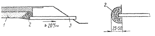 Величина jзим = 0,5 принята по табл. 6. Аналогичный расчет, произведенный для участка, где уклон меняется с 0,03 до 0,02, показывает, что толщина дренирующего слоя здесь должна составлять 0,27 м. На основании сделанных расчетов можно заключить, что в пределах вертикальной кривой, где продольный уклон постепенно изменяется от 0,05 до 0,01, толщина дренирующего слоя должна составлять от 0,23 м в начале кривой до 0,36 м - в конце. Вместо утолщения песчаного слоя здесь может быть устроен сплошной дренирующий слой из крупнопористого материала на всю ширину земляного полотна либо валики из щебеночного или гравийного материала с трубчатыми выпусками (см. рис. 10). Устройство валиков из крупнопористого материала через 50 м целесообразно также на всем протяжении участка с затяжным уклоном для предотвращения случайных скоплений воды в отдельных местах из-за неравномерного оттаивания дренирующего слоя и возможной неоднородности дренирующего материала. Приложение 1ИНСТРУКЦИЯ