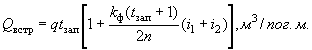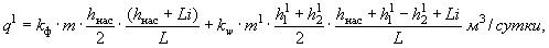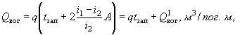 отношения При этих значениях и tзап = 6 суткам (кривая на номограмме) находим, что h = 3, откуда по формуле (15): Q1вог = 2 × 0,029 × 3 = 0,17 м3, а по формуле (13): Qвог = 6 × 0,029 + 0,17 = 0,34 м3. Необходимую толщину дренирующего слоя для временного размещения воды определяем по формуле (16):