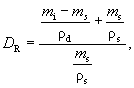 7.1.4 Гравиметрический способ разбавления 7.1.4.1 Для подготовки пробы для разбавления выполняют действия 7.1.3.1 - 7.1.3.3. 7.1.4.2 Определяют и записывают плотность жидкости в пробе и разбавителе. 7.1.4.3 Помещают на весы пустой сосуд для отбора пробы жидкости и записывают массу сосуда. 7.1.4.4 Переливают пробу, используя пипетку, и записывают массу пробы ms. 7.1.4.5 Сосуд с пробой встряхивают при помощи устройства для встряхивания пробы не менее 5 мин. 7.1.4.6 Добавляют к пробе чистый разбавитель для достижения желаемого соотношения разбавления, записывают общую массу mi (т.е. массу пробы, разбавителя и пустого сосуда). 7.1.4.7 Действительное соотношение разбавления DR вычисляют по формуле