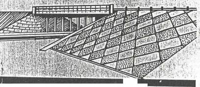 Примечание. Потребность в обрезках лесоматериалов на изготовление 1000 спиц при длине 20 см составит 0,15, при длине 30 см - 0,25 м3. 4.3. Потребность комплексной механизированной бригады в машинах, оборудовании и приспособлениях определена из расчета оптимальной их загрузки: Дернорез-дерноукладчик ЭО-2621 (Э-153)........................................ 1 Автогрейдер ДЗ-31-1 (Д-557).............................................................. 1 5. Техника безопасности 5.1. При производстве работ по укреплению откосов насыпи земляного полотна сплошной одерновкой плашмя необходимо соблюдать требования по охране труда, приведенные в соответствующих разделах «Правил техники безопасности при строительстве, ремонте и содержании автомобильных дорог» и СНиП III-4-80 «Техника безопасности в строительстве». 5.2. Машинисты, рабочие и другие работники при выполнении дорожно-строительных работ должны быть обеспечены средствами защиты и специальной одеждой в соответствии с действующими правилами по охране труда и технике безопасности. 5.3. Разработка дополнительных мероприятий по обеспечению безопасности труда не требуется. ТК-08-04-89УКРЕПЛЕНИЕ ОТКОСОВ ОДЕРНОВКОЙ «В КЛЕТКУ»1. Область применения 1.1. Технологическая карта разработана на укрепление откосов насыпей (выемок) высотой до 4 м одерновкой «в клетку». 1.2. Назначение одерновки «в клетку» - предохранить не подтопляемые откосы земляного полотна от разрушающего действия дождевых и талых вод, ветра и температурных воздействий. Применяется одерновка «в клетку» для укрепления откосов не подтопляемых насыпей и выемок крутизной не более 1 : 1,5 при незначительных площадях укрепления и наличии дерна в районе работ. 1.3. В состав работ входят: нарезка полос дерна дернорезом-дерноукладчиком; разрезка полос на отдельные карты и укладка их в транспортные средства дернорезом-дерноукладчиком; укладка дерна на откос дернорезом-дерноукладчиком; закрепление дерна, уложенного на поверхности откоса, вручную с помощью деревянных спиц; заполнение ячеек между дерновыми лентами растительным грунтом с помощью автокрана и бадьи; планировка растительного грунта вручную; засев ячеек семенами многолетних трав, поливка уложенного дерна и засеянных травой ячеек водой с помощью поливочно-моечной машины. 2. Организация и технология производства работ 2.1. До начала работ по укреплению откосов необходимо: проверить готовность земляного полотна и его соответствие требованиям СНиП 3.06.03-85 «Автомобильные дороги» и СНиП 3.02.01-87 «Земляные сооружения, основания и фундаменты»; произвести планировку поверхности откосов земляного полотна; выполнить разбивочные работы, обеспечивающие ровность укладки дерновых лент, в соответствии с проектом. 2.2. Для одерновки следует применять свеженарезанный луговой дерн, заготавливаемый в местах с грунтовыми условиями, аналогичными тем, в которых будет использоваться дерн. Перед нарезкой дерна трава должны быть скошена. Применение болотного и поросшего мхом дерна для укрепления откосов насыпей и выемок не допускается. 2.3. Нарезанный дерн хранить более трех дней не рекомендуется. При необходимости хранения дерн следует складировать в штабеля травой к траве, корнями к корням. При жаркой сухой погоде дернины необходимо поливать. 2.4. Доставлять дерн на объект строительства можно на автомобилях-самосвалах, бортовых машинах, прицепах и специальных по
